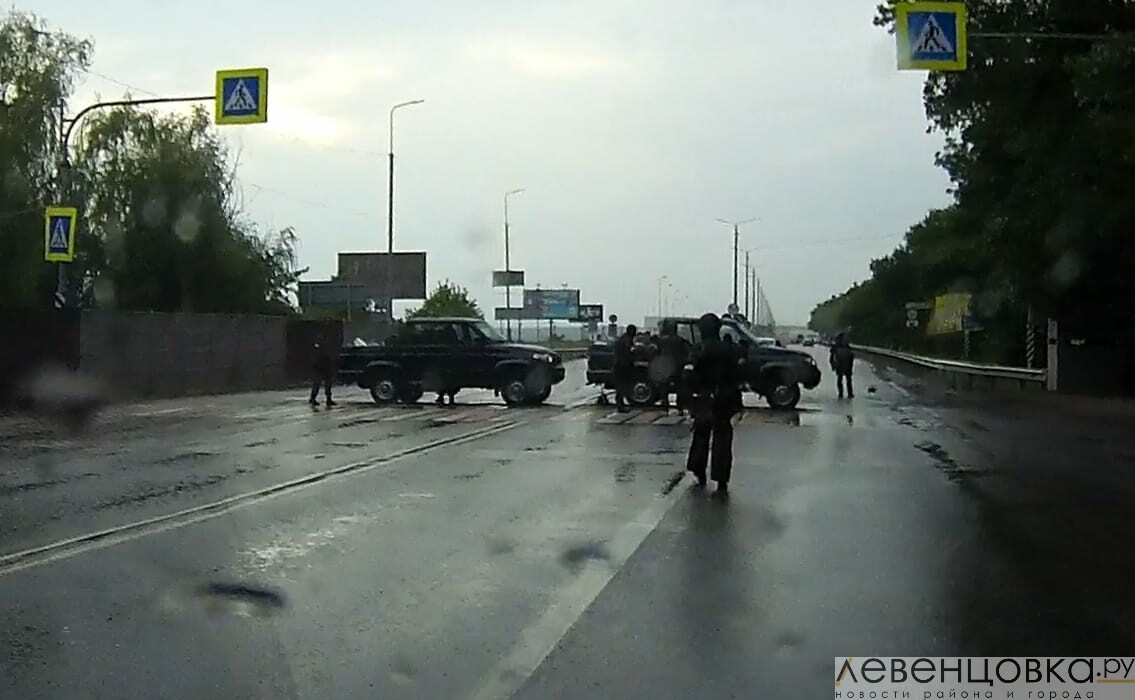 На фото, которые мы сделали буквально несколько минут назад видно, что оркестранты всё ещё стоят на посту ДПС. Большая часть трассы перегорожена пикапами.