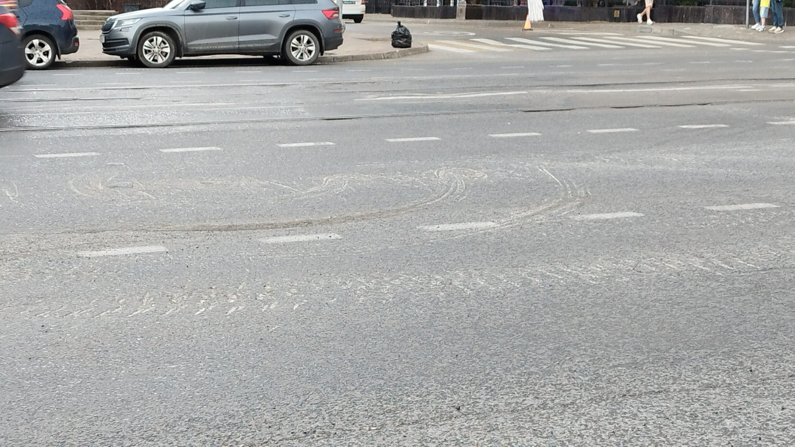 Однако, кроме незначительных следов гусениц (которые ни в какое сравнение не идут с неровностями из-за трамвайных рельсов) мы ничего не увидели.