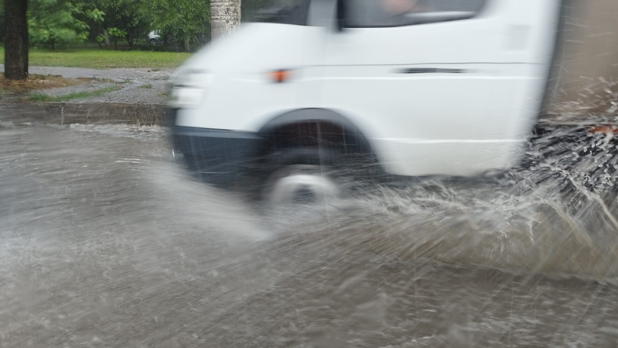 За считанные минуты дождь практически парализовал движение на Малиновского и Всесоюзной. Дороги снова превратились в реки.