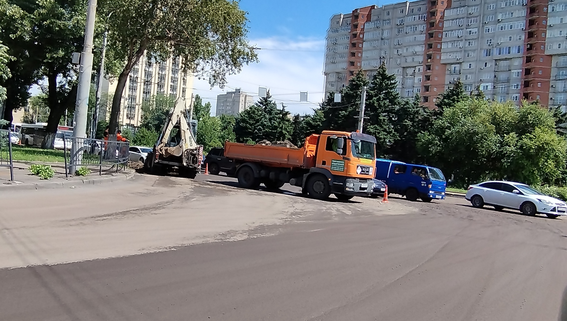 Сегодня в первой половине дня возле бассейна “Волна” бригады рабочих занимались ремонтном дороги. В итоге тысячи машин попали в лютую пробку.