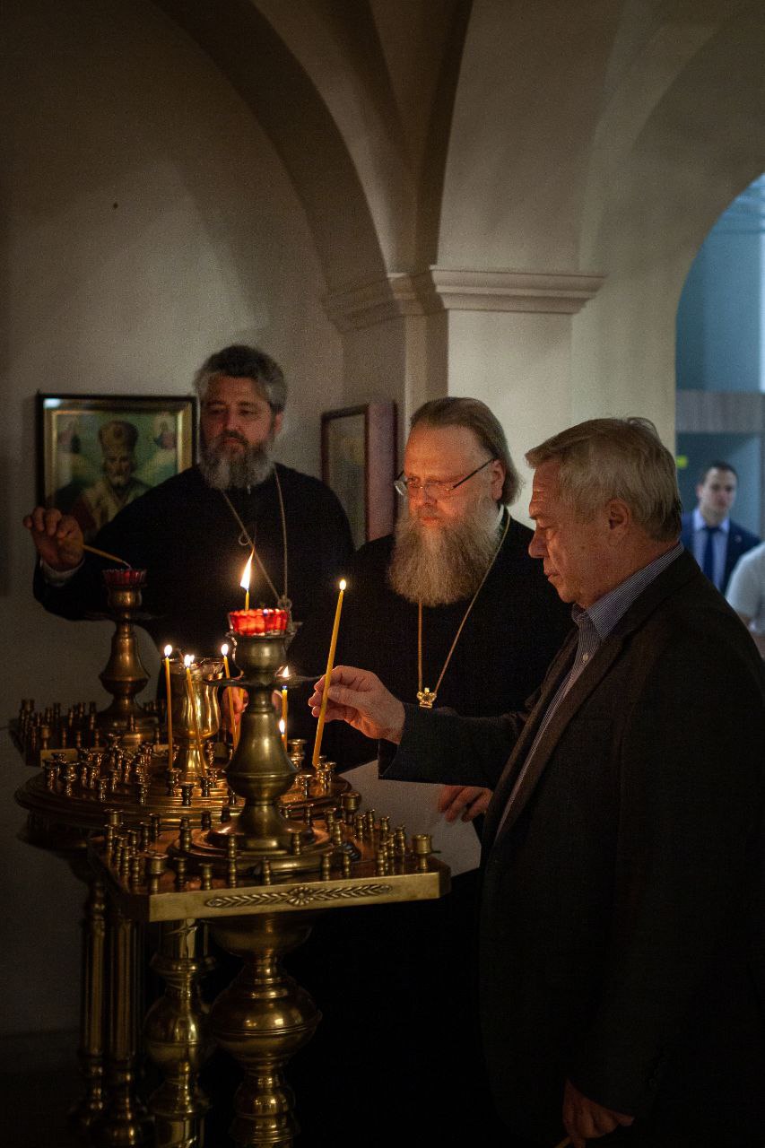 Вчера приход Георгия Победоносца (на ул. 339-й Стрелковой Дивизии, 33) посетили: губернатор Ростовской области Василий Голубев, митрополит Ростовский и Новочеркасский Меркурий, а также заместитель командующего 4-й армии ВВС и ПВО Юрий Яровой.