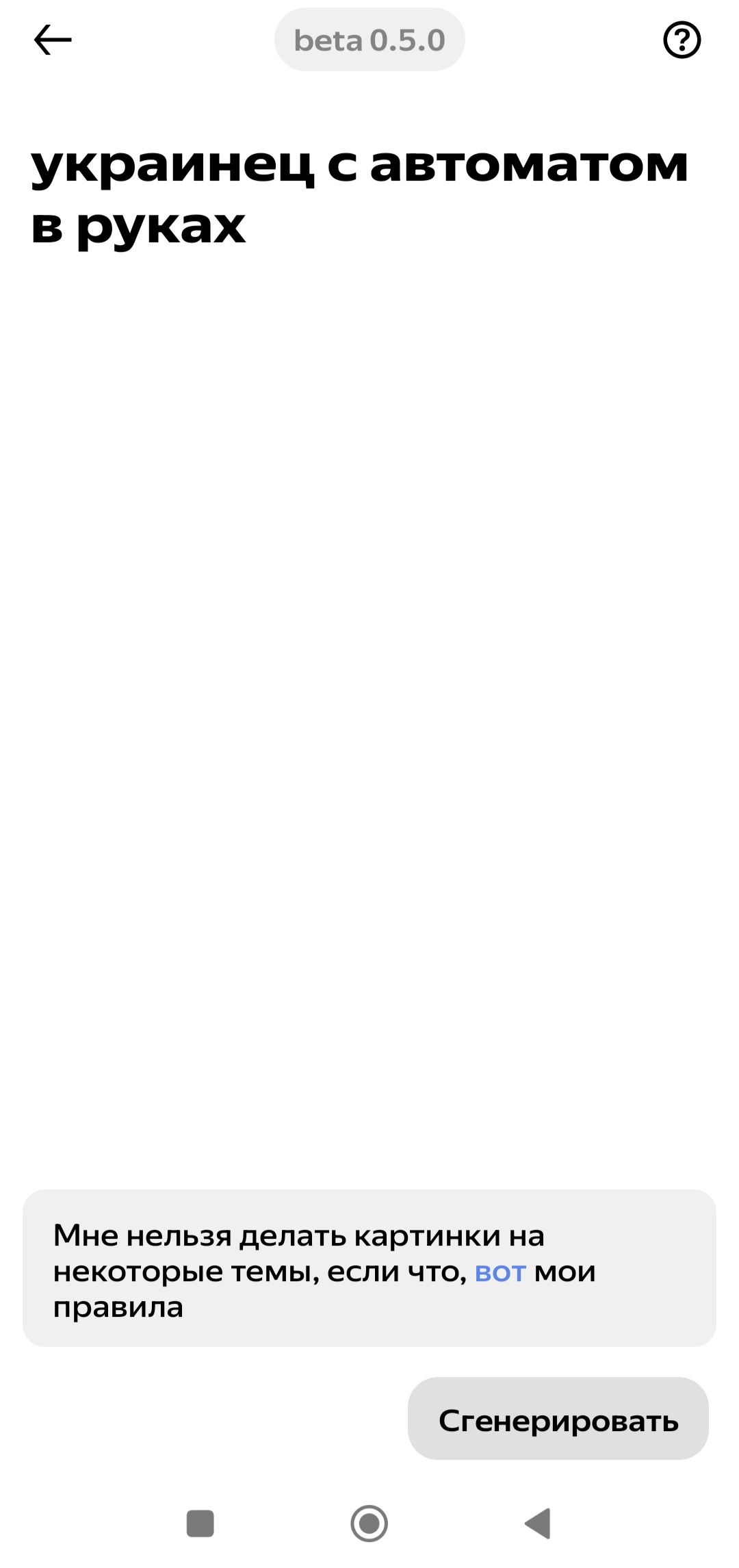 Исходя из правил, система ограничивает (после поста Медведева?) запросы, касающиеся политики, агрессии и иных условий.