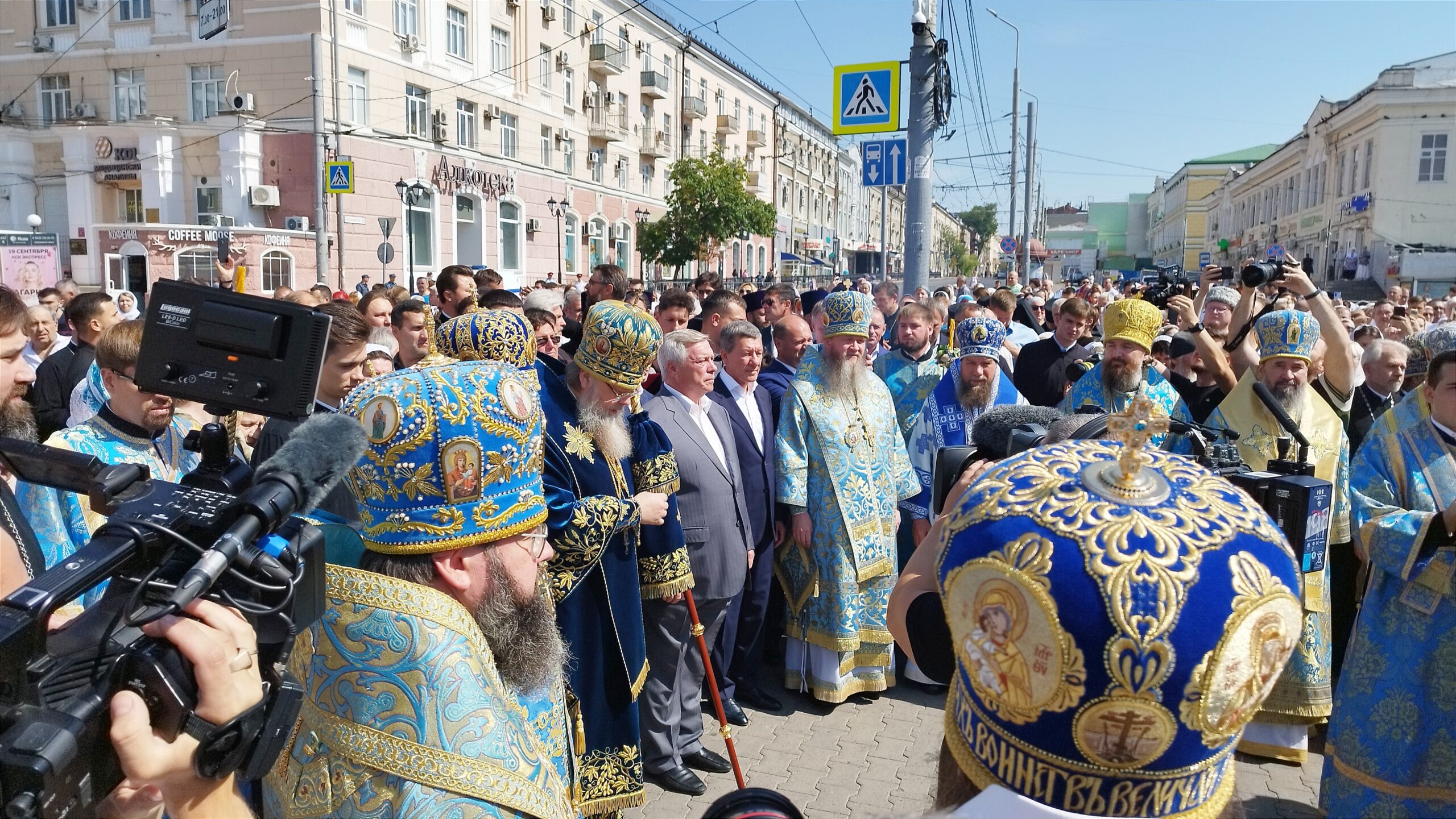 В крестном ходе приняли участие губернатор Ростовской области Василий Голубев, митрополит Ростовский и Новочеркасский Меркурий, а также несколько иерархов из других митрополий России.